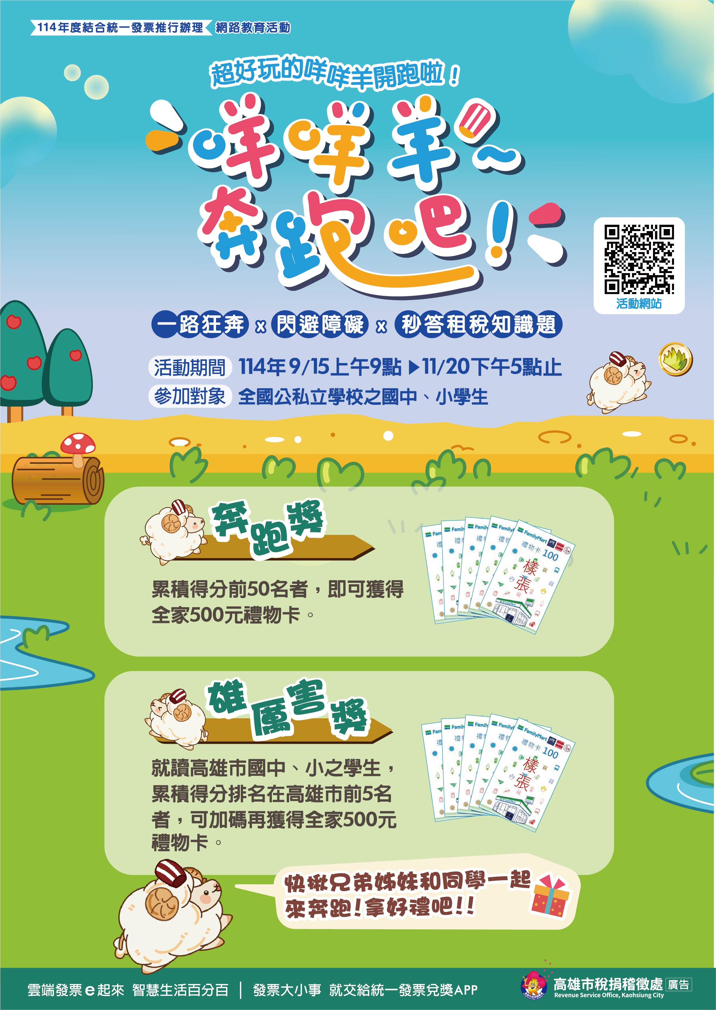 | 高雄市稅捐稽徵處舉辦「咩咩羊~奔跑吧!」網路教育活動 | 2025-09-17 | 2025-11-20 | 9 | 附件 | |