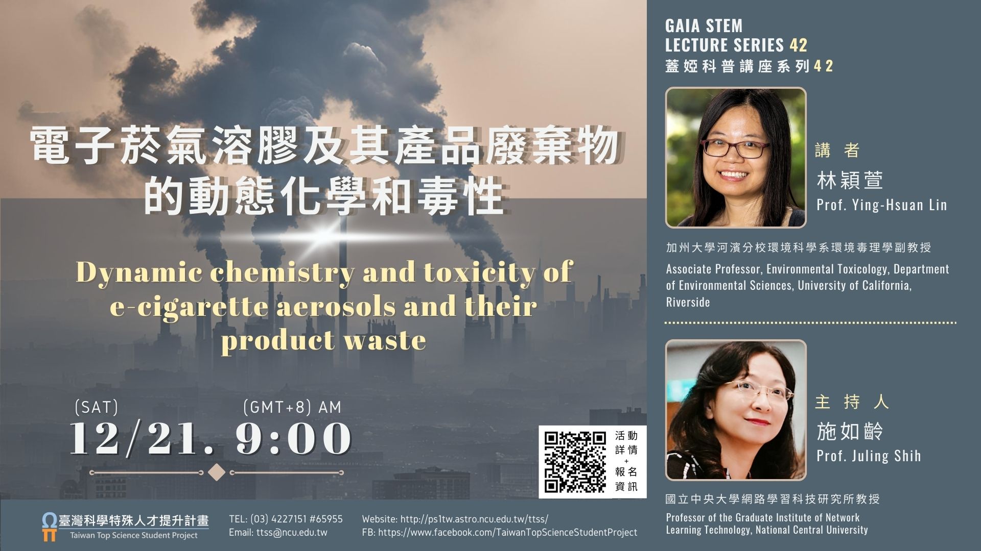 | 《蓋婭科普講座 系列 42》—— 「電子菸氣溶膠及其產品廢棄物的動態化 學和毒性」 | 教務處 | 2024-11-18 | 2024-12-22 | 24 | 附件 |