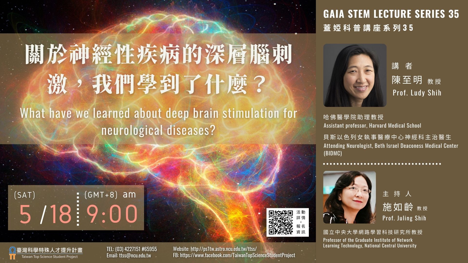 | 線上講座:《蓋婭科普講座系列35》—— 「關於神經性疾病的深層腦刺激,我們學到了什麼?」 | 教務處 | 2024-05-03 | 2024-05-18 | 18 | 附件 |